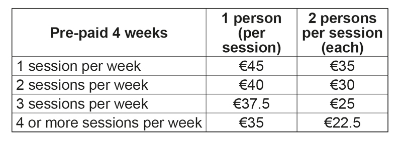 - Sessions are either prepaid or with postdated cheques at the beginning of the session for your own concenience.