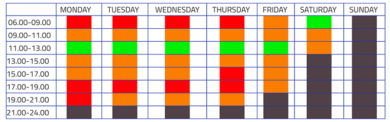 Before calling us, ensure that you have available time slots as the schedule during peak hours is usually pack jammed with appointments. Check out the table below before calling to book your session with us.